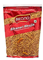 Bikano Bikaneri Bhujia is a savory Indian snack made from a mix of gram flour and spices, offering a crunchy texture and a spicy kick. It's perfect for munching on during tea time or as an on-the-go treat.