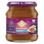 This is Patak's Major Grey Chutney, a mango preserve with a hint of ginger. It comes in a 12 Oz jar, perfect for adding a burst of fruity, tangy flavor to your meals.